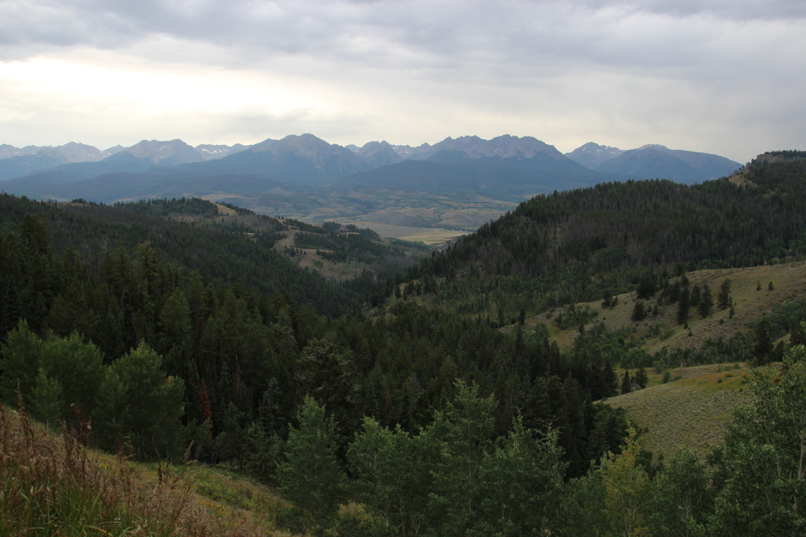 Crossing from Wyoming into Colorado, I breathed a sigh of relief after the emptiness I was confronted with in the least populous US State. Instantly, it seemed, peaks came into view. The day of the border crossing, I had aimed for possibly a 70 to 75 mile day with an overnight stop at Parkview Campground in Routt National Forest. The only problem was: That campground (despite it showing up on Google Maps) does not exist. Maybe it did once, but certainly not any longer. I only found out about this when I stared along a sandy dirt road, veering off Hwy 125. The passengers in the two pickup trucks bolting down the road confirmed this. My only option was to keep going to the summit (another Continental Divide crossing) and then hope to make it down to the next NFS campground before dark. Which I managed, barely, after a total of 90 miles. A really long day that could have been avoided.