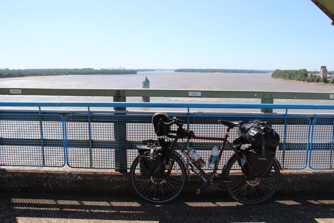 I eventually opted for a route through the city along the Mississippi River Trail which, incidentally, took me through Ferguson. I was quite on edge for all of the twenty miles riding from the very west (where my hosts lived) all the way to the river. The trail finally took me to the Chain Of Rocks Bridge, formerly part of Route 66, and across the Mississippi into yet another state: Illinois.